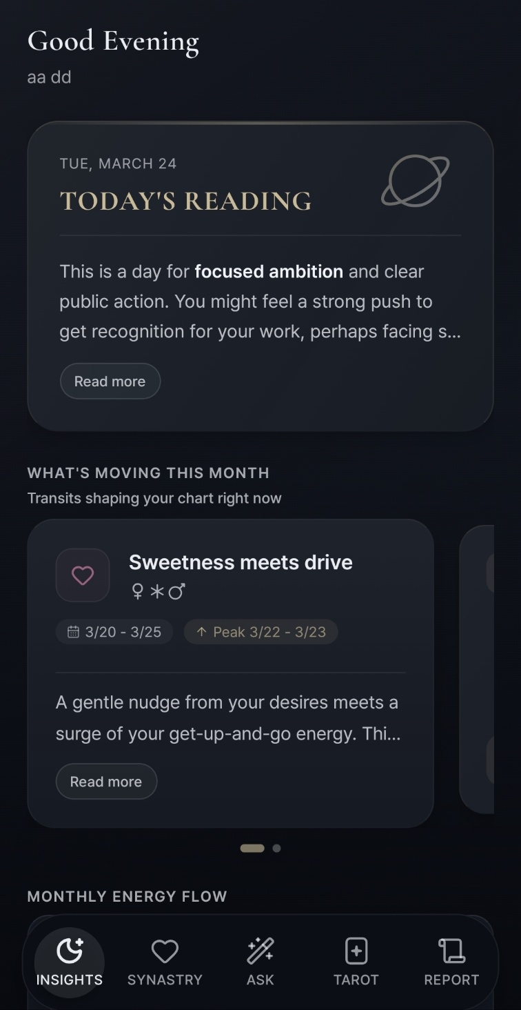 From precise birth charts to AI-driven daily insights — a complete astrology experience in your pocket.